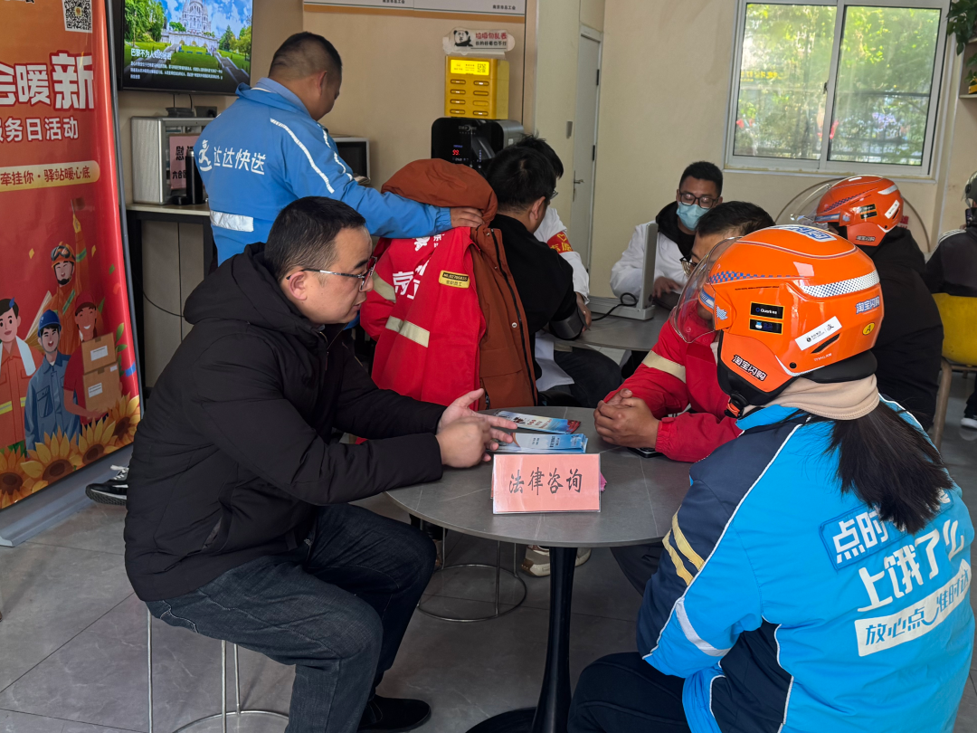 11月中旬,天气渐冷,六合区总工会携手雄州街道桥西社区,在风情街工会驿站开展工惠心连“新”——11月暖“新”服务活动,为快递员、外卖骑手、网约车司机等新就业形态劳动者群体送去初冬温暖,也让工会驿站成为寒冬中的“暖心港湾”。