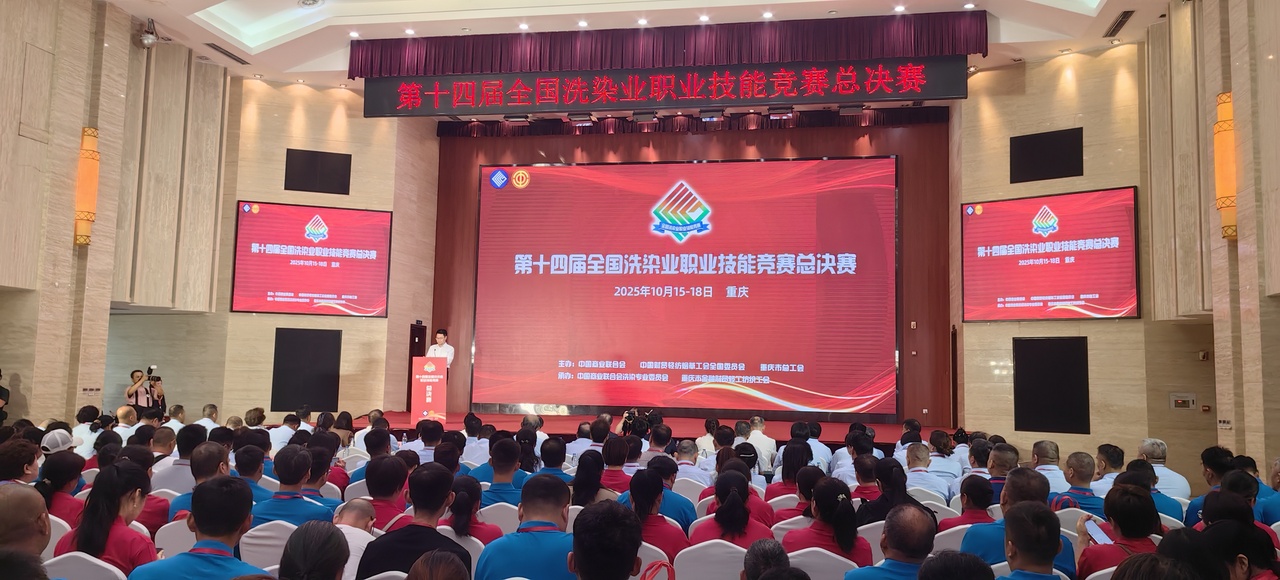 10月16日,第十四届全国洗染业职业技能竞赛总决赛在重庆举行。来自全国的185名洗染能手齐聚山城,在“污渍去除”“鞋类护理”“公纺洗护”“服装熨烫”和“衣物织补”五个专项技能领域展开激烈角逐。