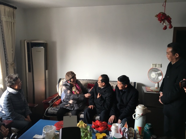 天寒人心暖,家里迎来了慰问的领导,84岁高龄的谢亮璧十分感动。由于长期受患高血压病和胃病的困扰,曾因鼻腔肿瘤行手术治疗,一直坚持与病魔抗争。尹德明盛赞她乐观向上的精神和为事业为家庭做出的努力,鼓励她继续坚定信心、养好身体,并亲手将慰问金放到谢亮璧的手中。