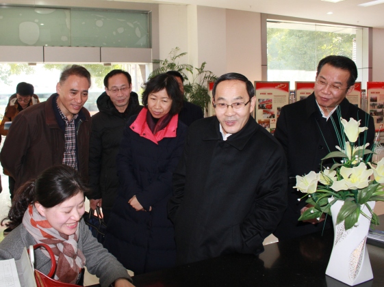 1月9日上午,全总慰问团听取了省、市工会工作的汇报,来到了南京市职工服务中心。