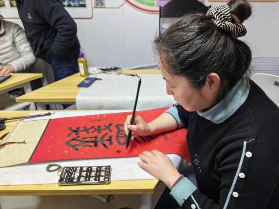写福字环节更添节日氛围,书法爱好者现场挥毫泼墨,笔尖流转间,一个个寓意吉祥的马年福字跃然纸上,红纸金墨相映成趣,满含对新年的美好期许。新就业劳动者们踊跃参与,有的驻足欣赏书法创作,有的亲手尝试书写福字,在笔墨书香中感受传统文化的魅力,脸上都洋溢着幸福的笑容。
