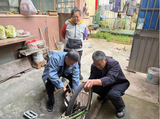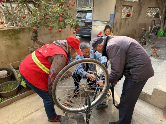 为了以实际行动践行党员的初心和使命,近日,栖霞街道栖化新村社区工会“枫叶服务社”的老党员行动起来,为辖区困难职工免费维修自行车,让大家出行更加便捷安全。