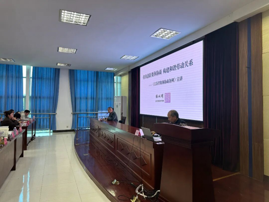 在业务赋能方面,江苏省金牌劳动关系协调员梅从明对《江苏省集体协商条例》进行解读,并传授了协商技巧;市总经审会副主任詹爱军从审计视角剖析工会经费管理难点,提出了规范使用路径;南京市职工互助会胡雷部长深度解读互助保障政策,助力职工权益保障精准化。