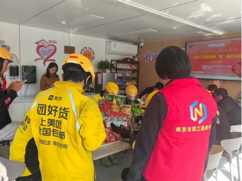 在白下路257号工会驿站,多名快递员、外卖配送员等新业态劳动者走进驿站,参与这场为他们而定制的暖“新”服务日活动。活动以“劳模引领,新业奋进”为主题,通过宣传先进典型、介绍入会政策、开展便民服务,切实关爱新就业形态劳动者,传递工会组织的温暖和关怀。