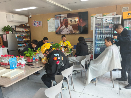 法律咨询、免费理发、血压测量等便民服务项目有序开展,切实回应新就业形态劳动者实际需求。专业人员现场解答劳动者在劳动合同、权益维护等方面的疑问;理发服务有序开展,受到职工好评;市职工服务中心党支部的党员志愿者协助劳动者进行血压测量。同时,驿站还提供了咖啡、热饮及零食点心,为奔波在秋风里的劳动者送上一份“工会温度”。