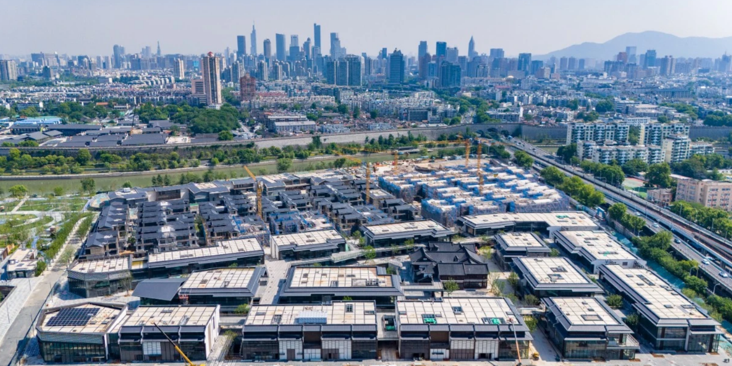 老城南片区更是处处浸润着“文化味”。在中华门西侧的光环花园城项目现场,一座挂有“来宾楼”匾额的古风建筑尤为醒目,屋顶飞檐让人眼前一亮。项目方香港置地相关负责人介绍,明代朱元璋定都南京后,曾在秦淮河畔修建“花月春风十六楼”,其中来宾楼是接待各国使节的重要场所。该项目就以16座独立商业体呼应这一历史布局,通过连廊相互衔接,并将南京历史脉络贯穿于整体设计之中。