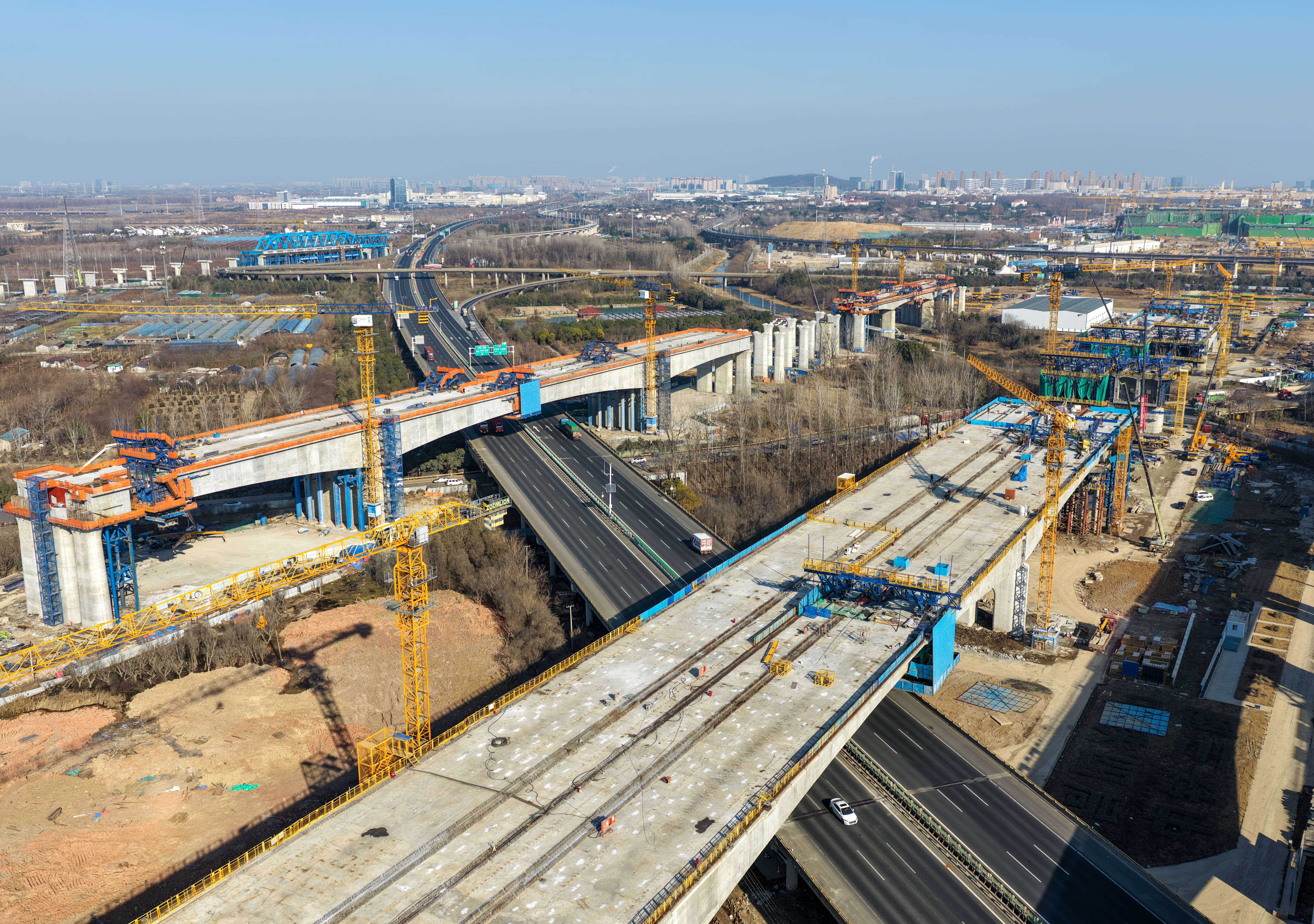 南京北站配套铁路桥梁工程 南京特大桥上跨沪陕高速连续梁合龙