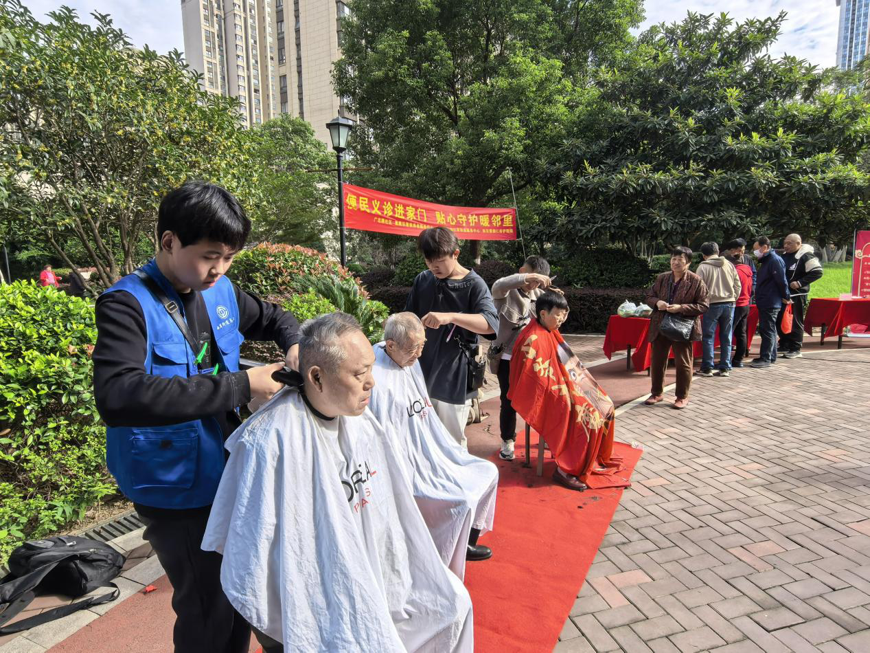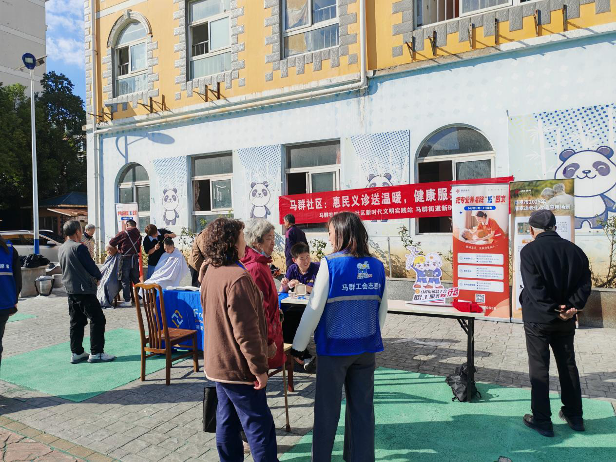 重阳节来临之际,为营造社区尊老、爱老、助老良好氛围,10月22日下午,马群街道马群社区联合工会携银城康养中心在东景花园小区开展便民志愿服务活动,为辖区老年人提供义诊、义剪等“微服务”。