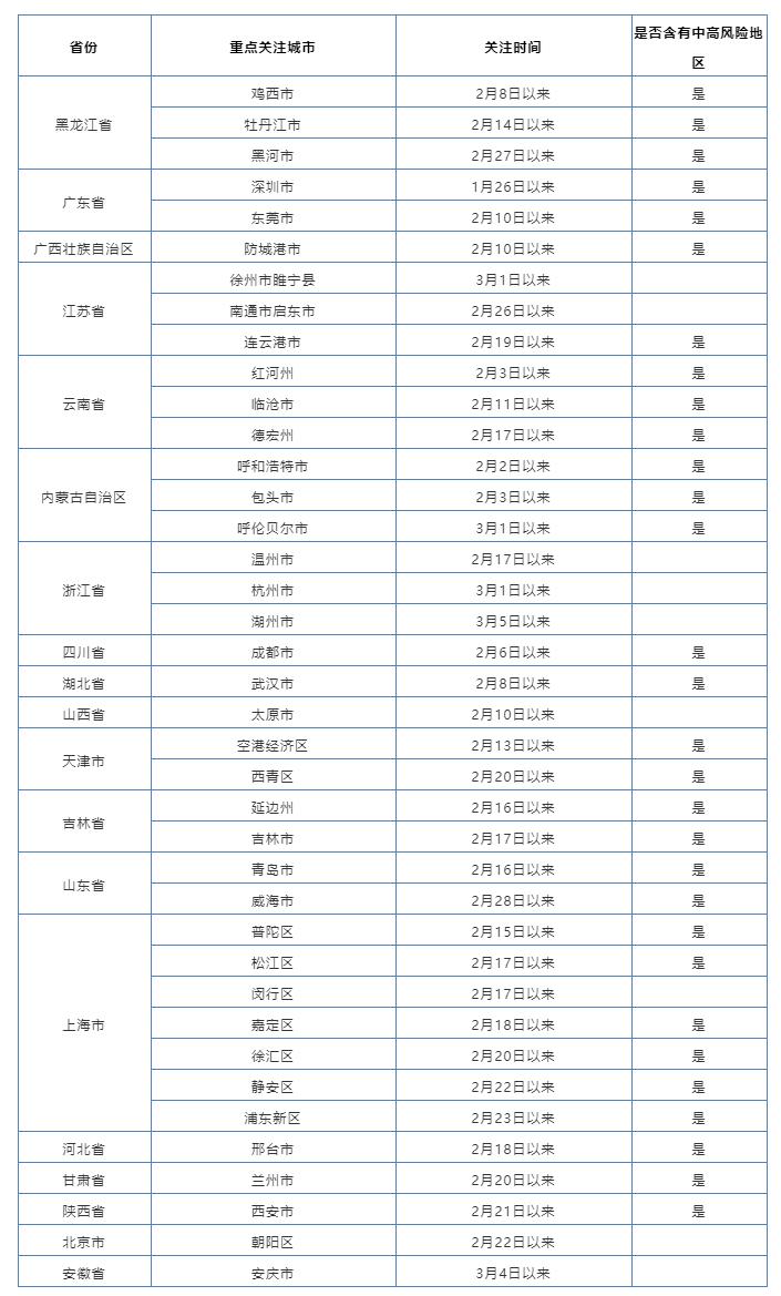 “重点关注城市”列表可在“健康南京”公众号每日疫情通报中查阅。