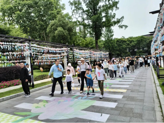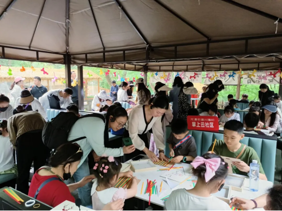 皇家鹿苑外,每组职工家庭依次而坐。老师为大家介绍了竹编技艺的历史和制作方法,职工家庭成员仔细聆听,认真地跟随老师的讲解,一起合作,在“一挑一编”中体验竹编非遗的魅力。