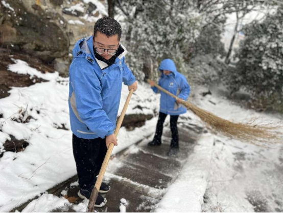 顶山街道金汤街社区工会组织职工积极参与扫雪防冻工作