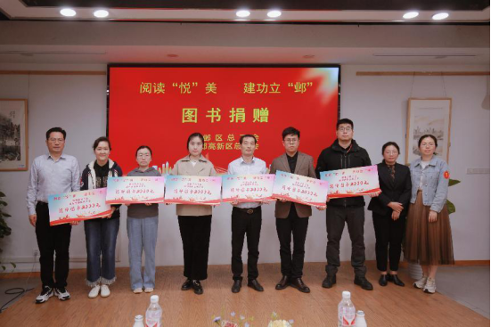 活动进入第二部分——阅读体验环节。建邺区总工会党组副书记、常务副主席管庆,建邺区图书馆馆长陈萍,建邺高新区管委会副处职、机关工会主席魏求珍向南京公诚节能新材料研究院有限公司、江苏徐矿置业有限公司、利安人寿保险股份有限公司等6家企业工会赠书,鼓励他们继续推动职工阅读活动深入开展。