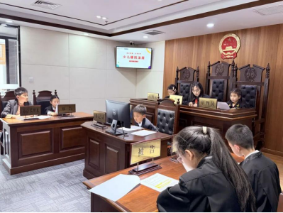 沉浸式模拟庭审以“拒绝校园欺凌——以法律思维之力,守护少年的你”为主题,通过职业体验与法治教育相结合的方式,引导少年儿童树立法治意识、增强自我保护能力,直观地感受法律的威严与公正。