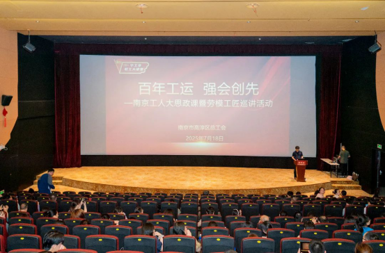 为深入学习贯彻习近平总书记在庆祝中华全国总工会成立100周年暨全国劳动模范和先进工作者表彰大会上的重要讲话精神,大力弘扬劳模精神、劳动精神、工匠精神,让新思想走进基层、走进职工群众,7月18日下午,高淳区总工会于宁高国际影城举办了“百年工运 强会创先”劳模宣讲活动。来自各直属工会的200多名职工代表齐聚于此,一同聆听劳模的精彩故事,感受榜样的示范力量。