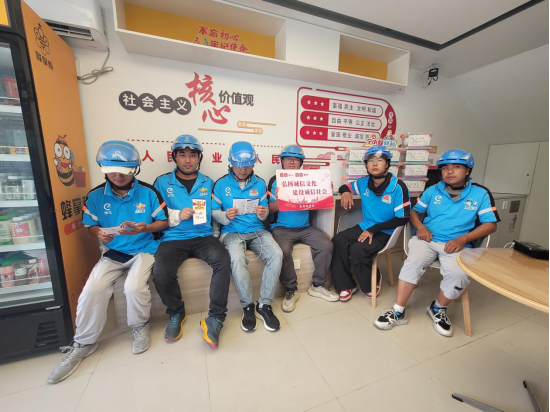 活动当天,社区工作人员还面向外卖小哥和现场群众开展诚信教育和垃圾分类主题宣教,分发宣传手册,呼吁市民守诚重信,礼尚文明,践行节能环保的生活方式。