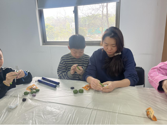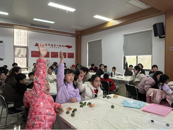 春风拂面,绿意盎然。“青团作为清明时令的传统小吃,承载着深厚的历史底蕴。唐代起,青团便是江南地区清明祭祖的必备供品,历经千年演变,青团已从祭祀食品发展为象征团圆与春意的节令美食,成为中华饮食文化中一抹独特的亮色。”工会志愿者老师讲完了历史由来,便是接下来的重头戏——做青团。“要把艾草汁均匀地倒入糯米粉中,和面要细心一点,力道不要太重,如果太黏就要多加点糯米粉,太干了就加点艾草汁……”工会志愿者老师认真地讲解着每一处细节。孩子们在家长和志愿者的帮助下认真地跟着老师制作,揉面、按压、裹馅,不同工序的小朋友忙忙碌碌却井然有序,每个人都沉浸在这份特别的文化体验中。不一会儿,一个个色泽鲜亮、香气扑鼻的青团呈现在眼前。大家品尝着亲手制作的青团,感受春天独有的清甜滋味。