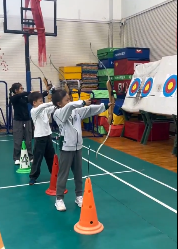 “第一次拿弓的时候,我的手都在抖,但我记着老师说‘盯着靶心,就别乱想’,没想到真的射中了!”提到射箭,应闻眼睛都亮了,“练射箭不仅能锻炼我的身体,还让我学会了专注,我现在上课很少走神。”