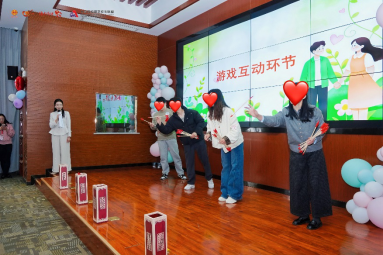 活动融合三八节与植树节元素,现场以绿植、粉色气球和主题展板布置,温馨的背景音乐萦绕四周,到场女职工均获赠定制花束,暖心细节拉满。开场后,长寿阁内的绿植知识问答、名字接龙+绿植配对、蒙眼识绿植等破冰游戏轮番上演,职工们踊跃参与、默契配合,在欢声笑语中化解初见的尴尬,快速拉近距离。不少嘉宾表示,趣味游戏让陌生感瞬间消散,轻松的氛围让人倍感舒适。