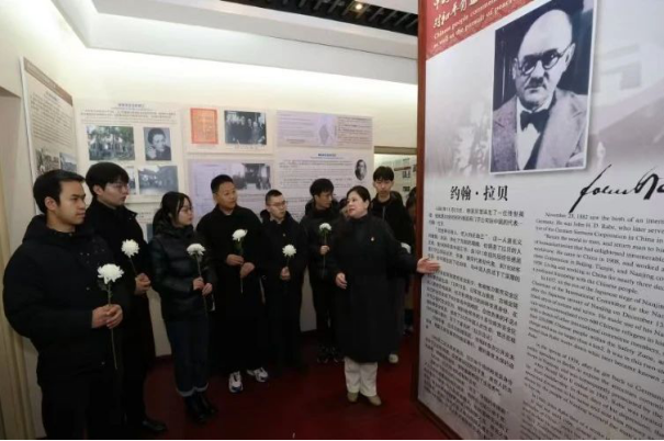 青岛路社区工会联合会联合南京大学法学院、城市规划研究院,龙世中心,中国银行广州路支行共同开展“铭记历史 守护和平”爱国主义教育活动,带领辖区部分党员职工及青年志愿者来到位于小粉桥1号的拉贝故居,缅怀积极参与救助中国难民的约翰·拉贝。