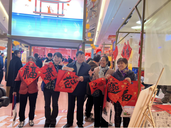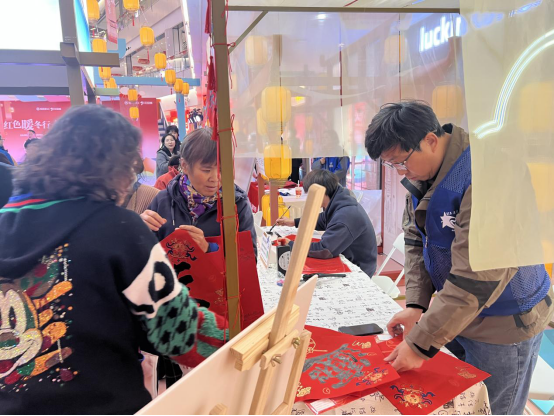 活动现场设置了义诊、写福送福、金融服务等摊位,吸引了许多居民参与。有的妈妈带孩子前来等“福”字,有的居民接受了义诊服务,并就日常保健问题与医生展开交流,还有居民在广电业务前驻足,脸上露出着满意的笑容……场面异常热闹,居民们乐在其中。