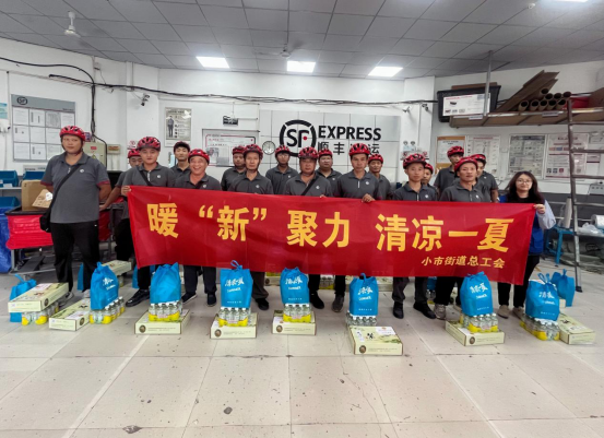 活动期间,小市街道总工会深入辖区快递站点、外卖配送站、货运停车场等场所,为新就业形态劳动者送去饮料、花露水、毛巾、冰袖、西瓜等防暑降温物资。