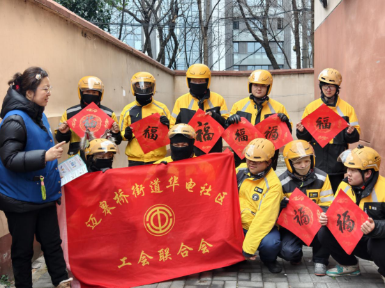 凛冬送暖,福至人心。近日,迈皋桥街道华电社区工会联合会以“我们的节日”为主题,联合“宁小蜂驿站”开展美团外卖骑手专项慰问活动,将党和政府的关怀、工会组织的温暖精准送达新业态劳动者心坎上,让奔波在街巷的外卖小哥在新春将至之际感受到“家”的归属感。