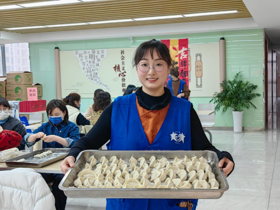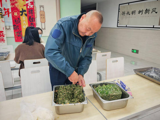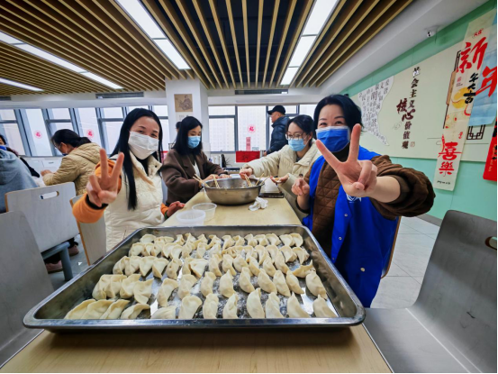 活动的第一个环节是包饺子。来自尧化街道机关、姚坊门物业公司、综合执法大队、苏州银行等多家单位的二十多位包饺子能手齐聚一堂,他们手法娴熟,动作迅速,不一会儿,一盘盘又白又胖的大饺子就摆满了桌子。大家一边包饺子,一边聊着家常,欢声笑语不断,整个食堂洋溢着欢乐和谐的气氛。