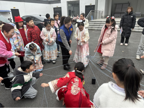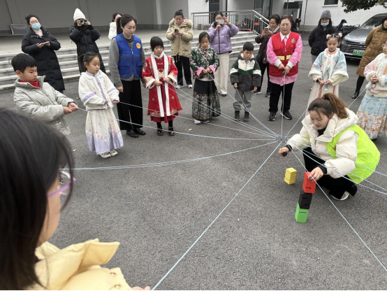 在团队组建环节,孩子们充分发挥奇思妙想,为自己的小组取了响亮又有趣的名字,还一起喊出了充满斗志的口号,展现出蓬勃的朝气与活力。游戏过程中,各小组成员紧密配合、齐心协力。一开始,由于缺乏经验,砖块屡屡倒塌,在工会志愿者的鼓励下,大家并没有气馁,在一次次的失败中不断摸索、总结经验。年龄稍大的孩子主动承担起策略制定的重任,冷静思考、精准判断,为团队出谋划策;其他成员则全神贯注地控制绳索的力度和方向,还有人时刻提醒大家保持耐心,不要着急。慢慢地,孩子们逐渐掌握了正确的发力方式,彼此之间的配合也越来越默契。